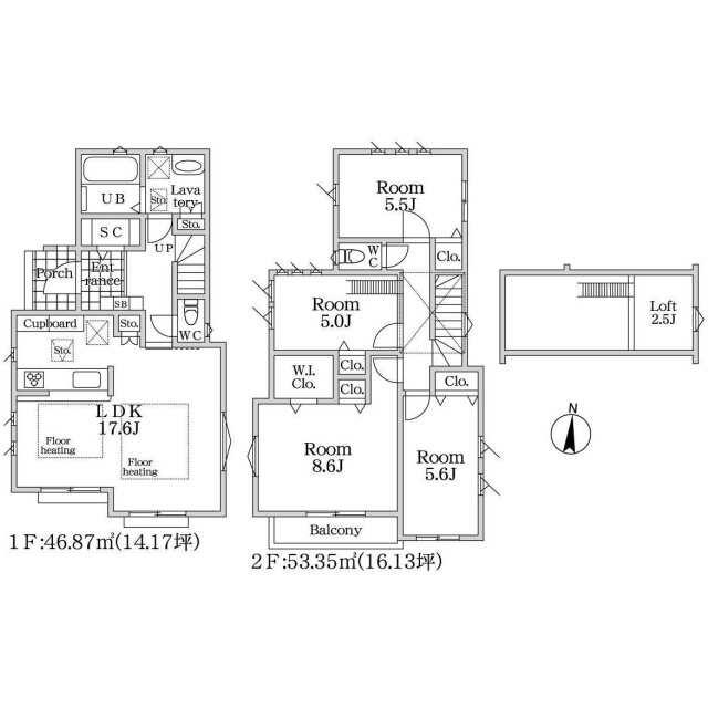 | 間取り(内訳) | 4LDK(洋8.6/5.6/5.5/5LDK17.6) | 建物面積 | 100.22㎡ |