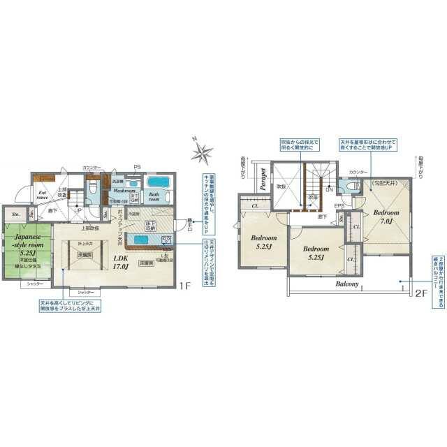 | 設備 | 床暖房 床下収納 モニタ付インターホン シャッター雨戸 食器洗浄乾燥機 浄水器 浴室暖房 浴室乾燥機 上水道 下水道 都市ガス 電気 トイレ2ヶ所 | ||